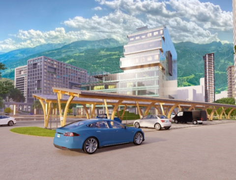 Dabei werden versiegelte Flächen (bestehende Parkplätze) zur Stromerzeugung genutzt. Durch die Kombination von Schraubfundamenten, Holzkonstruktion und bifazialen PV-Modulen (Glasmodule) handelt es sich nicht nur um eine nachhaltige sondern auch um eine optisch ansprechende Carportlösung.