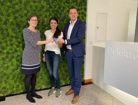 Am Foto zu sehen: Sophia Unterberger (Bildmitte) mit Christina Pfistermüller und Clemens Klinglmair von Deloitte Steyr.
