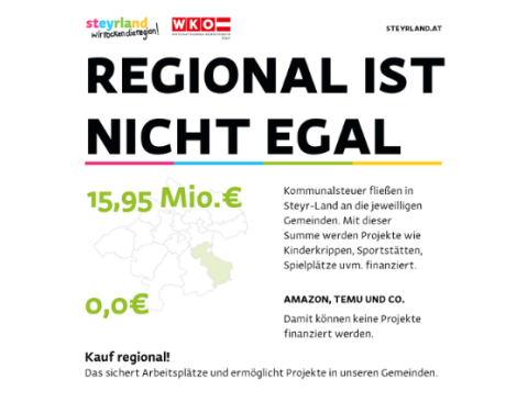 Mit der Social-Media-Kampagne „Regional ist nicht egal“ schafft die Initiative „steyrland – wir rocken die region!“ einmal mehr Bewusstsein dafür! Auf sämtlichen Kanälen wie Instagram, Facebook, Tiktok oder LinkedIn findest du die genauen Zahlen für deine Gemeinde. Erkundige dich nach Onlineshops sowie Liefer- und Abholmöglichkeiten in unserer Region.