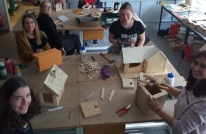 Gemäß dem Lied „So let‘s build a house, starting with the ground, if we work together we can work it out“ kreieren die Schülerinnen und Schüler – vom Grundriss bis zum fertigen Haus – zum Beispiel ihr individuelles Vogelhäuschen.